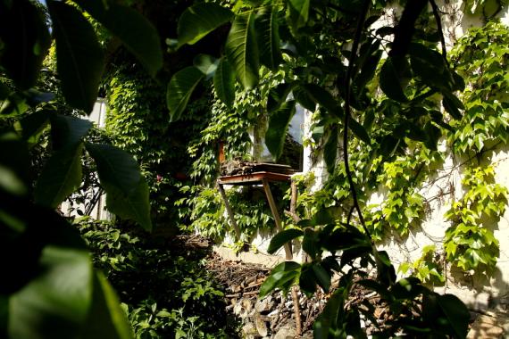 kúszónövényekkel (a képen trombitafolyondár) befuttatott falak jó élőhelyet