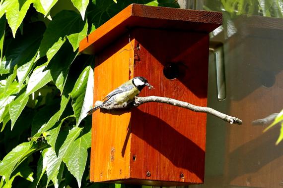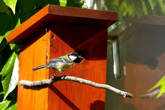 Etető széncinege ablakgyíkvár fölé kihelyezett üveg oldalú ablakodúnál – 10 fotó,