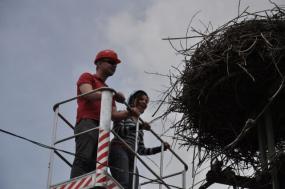 A hím biztonságba helyezésével egy időben azon dolgoztunk, hogy darus kocsit szerezve a tojásokat kimentsük a fészekből, a tojó ugyanis egyedül képtelen felnevelni a fiókákat. A tojások a Börzsöny Alapítvány keltetőjébe kerültek, ahol kiderült, hogy mind a négy tojásban egészséges az embrió. A nagy riadalom és sok aggódás után 2015. május 27-én a negyedik tojásból is egészséges fióka bújt elő, ezzel a dejtári gólyamentés újabb szakasza zárult le.