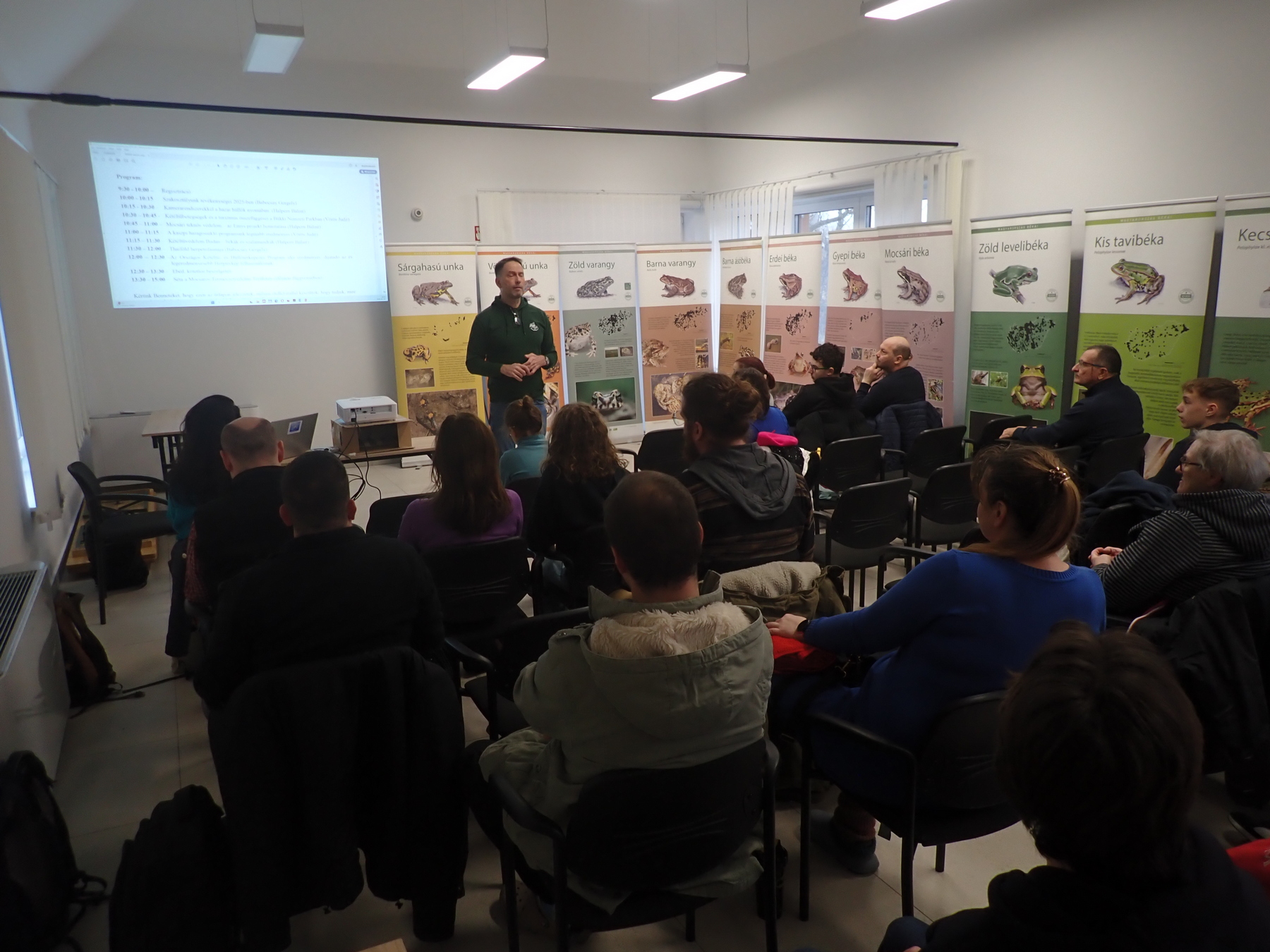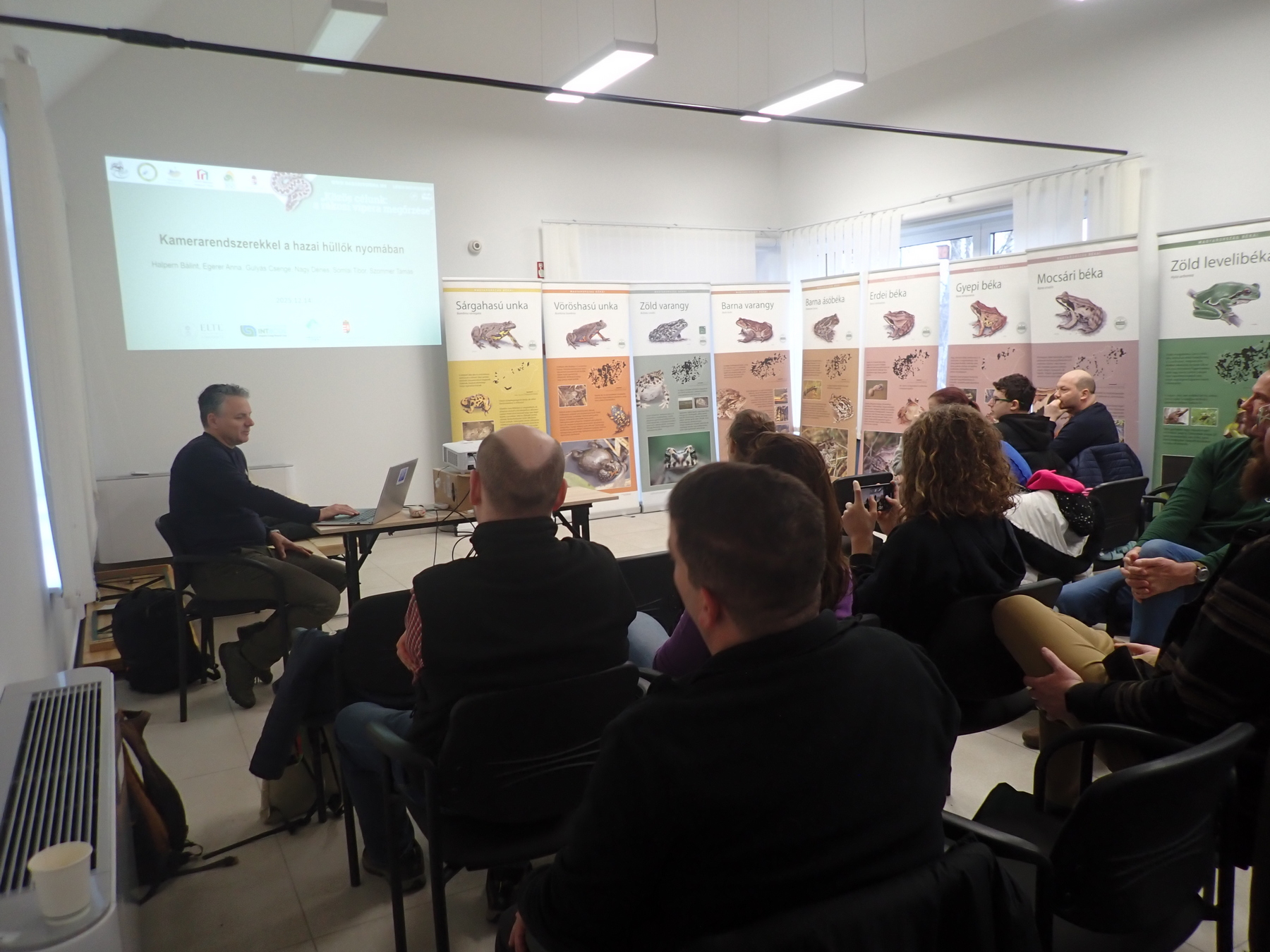 Ezt követően Halpern Bálint tartott beszámolót a hüllők kutatásában alkalmazott kamerarendszerekkel kapcsolatos eredményekről. A további előadásokban megismerhettük a Fertő-Hanság Nemzeti Parkkal és a szlovákiai Broz szervezettel közös program keretében, a mocsári teknős védelmében végzendő monitorozási terveket. A kaszpi haragossikló populációk genetikai vizsgálatával kapcsolatos legújabb eredményeket, valamint a fővárosban kétéltűek védelmében, az év során végzett aktív természetvédelmi beavatkozásokról hallhattak beszámolót az érdeklődők.