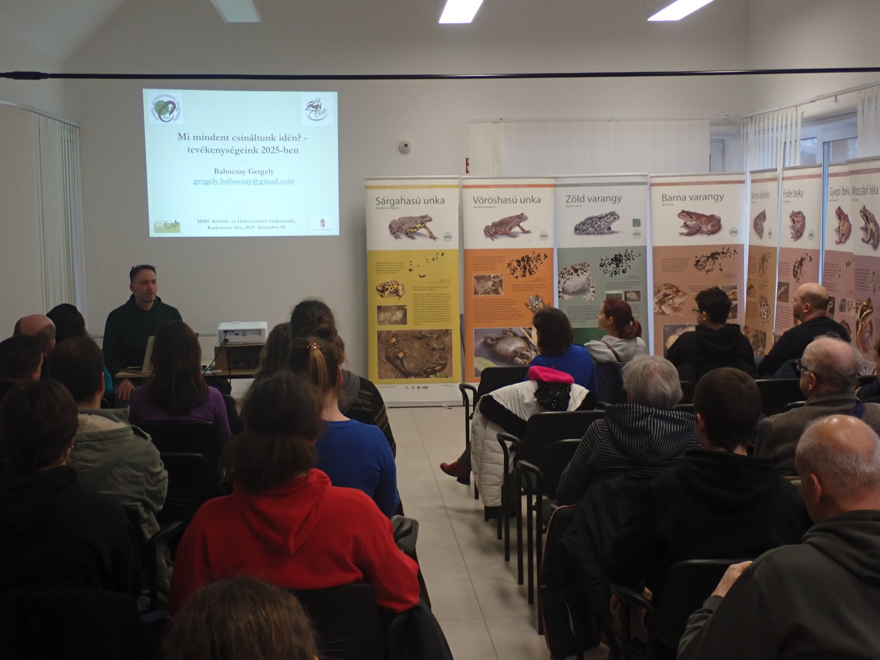 Az idei évben december 14-én, vasárnap Egyesületünk új látogatóközpontjában, a Schmidt Egon Madártani és Természetvédelmi Központban, 70 érdeklődő részvételével került sor Szakosztályunk tagjai és az Országos Kétéltű- és Hüllőtérképezés Programunkban résztvevő önkénteseink számára rendezett évzáró találkozóra.