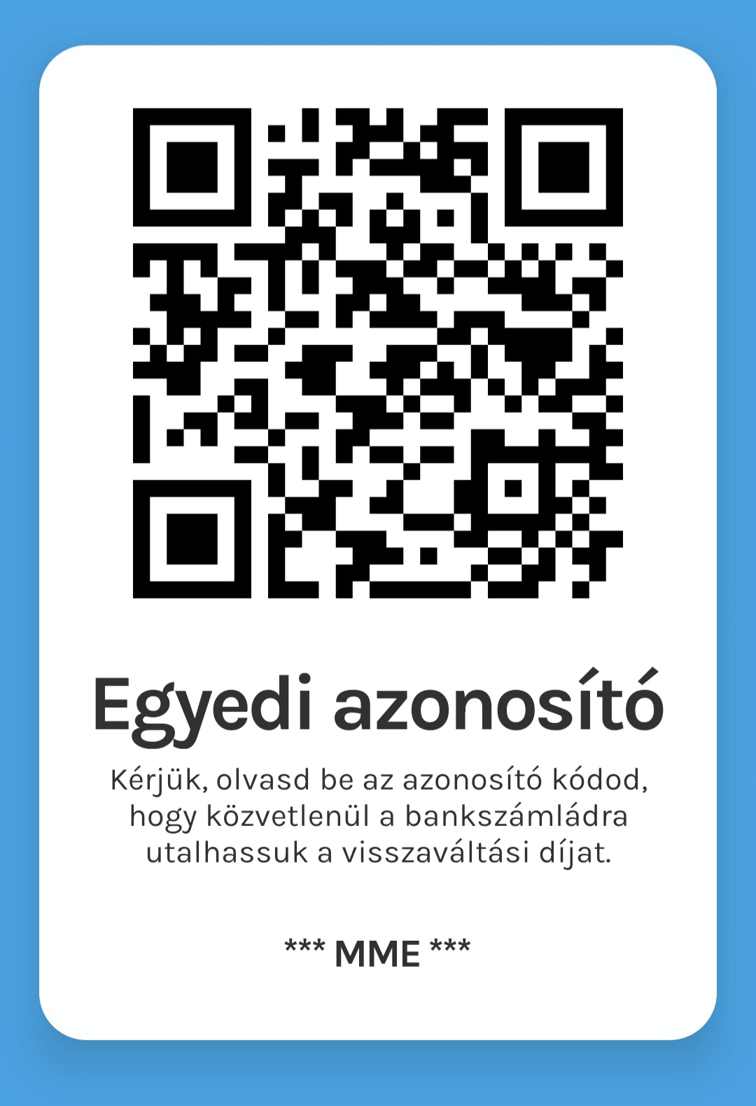 A MOHU REpont automatáknál a visszaváltás elején lehetősége van QR-kódot megadni. Ha az MME QR-kódját használja: