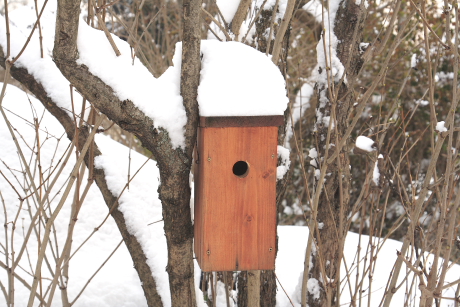 A téli madárvédelem eszközei a mesterséges madárodúk is, amikben több faj is