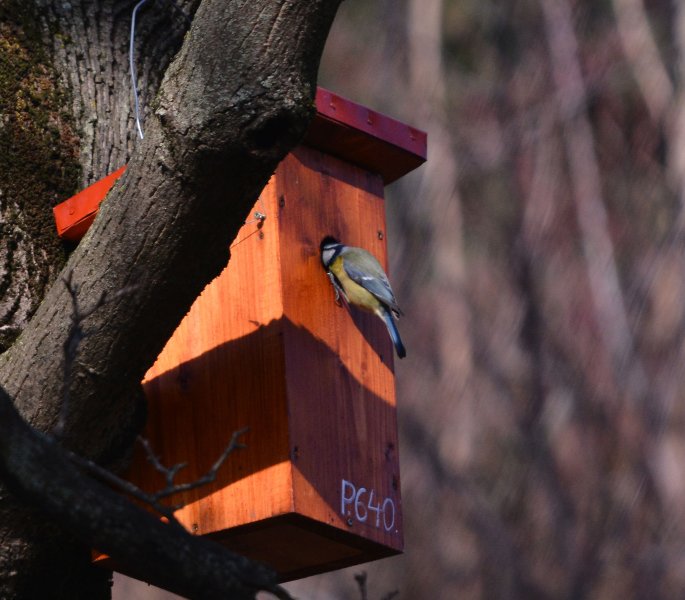Kék cinege felfedezi a B odút (Fotó: Sarlós Dávid)