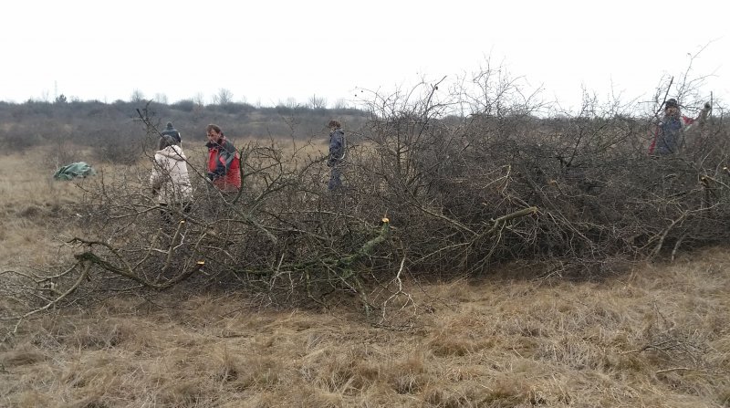 Mielőtt elkezdődött volna a munka, Bajor Zoltán és Korda Márton köszöntötte a segítőket, és rövid tájékoztatást tartott a terület értékeiről, a munka hasznosságáról és lényegéről. Ezek után szétosztottuk a védőkesztyűket és a ponyvákat és indulhatott a munka. A borongós, de az évszakhoz képest enyhe időben közel 60 segítő volt jelen és szánta rá a szombat reggelét, hogy segítsen ezt a ritka élőhelyet újra, régi pompájában tudni. A gépekkel kivágott cserjéket az önkéntesek ponyvákra pakolták, majd a gyepterület szélén lepakolták ezeket. Kiemelt jelentőségű ennek a területnek a kezelése és karbantartása, mert olyan ritka növényfajok is élnek itt, amelyek csak ezen a területen találhatók meg.