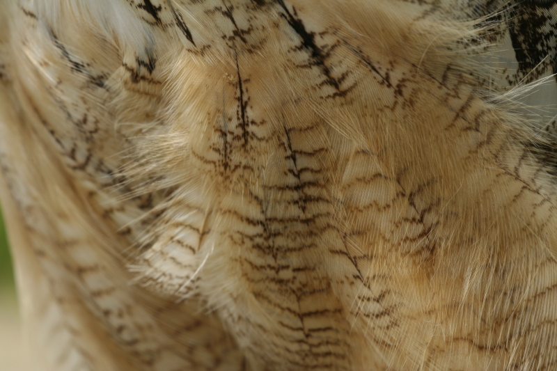 | A tollaknak nem csak a párválasztásban vagy a rejtőzködésben van meghatározó szerepük, a hőháztartás fenntartása mellett a repülő madarak testét is áramvonalassá teszik. A képen uhu testtollai láthatók (Fotó: Orbán Zoltán). |