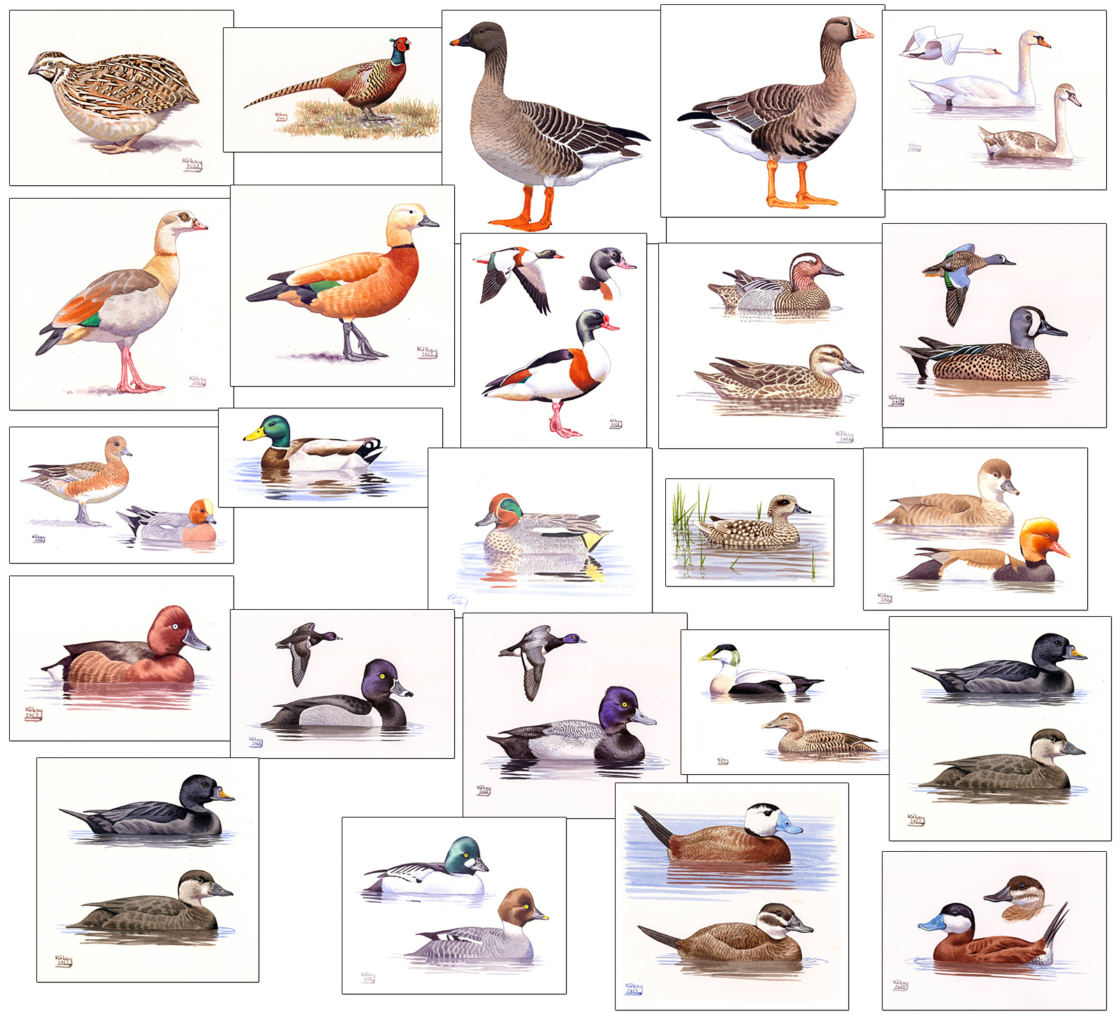 Az alábbi 5 galériában megtekinthetőek a képek (114 madárfajról 111 kép, mind akvarell és tempera papíron, A5 és A4 közötti méretben), s az egyes galériák alatt a fajok nevei és a képek árai is láthatók.