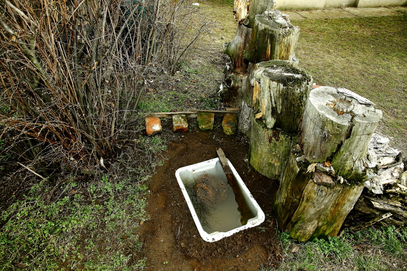 megvásárolható, kerámia "békavár", amit elég így elhelyezni a kert egy