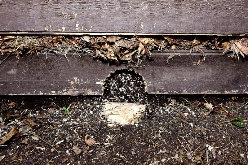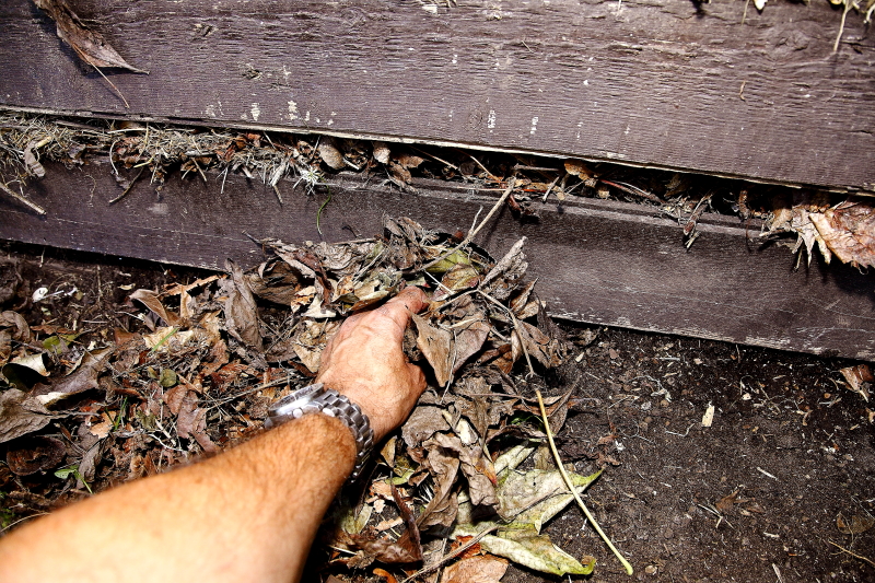 Ezen könnyen és gyorsan úgy segíthetünk, ha a talajszintnél bejáratot nyitunk a komposztáló falába, és ehhez még dekopírfűrészre sincs feltétlenül szükség (ha van, az persze még egyszerűbbé teszi a dolgot).